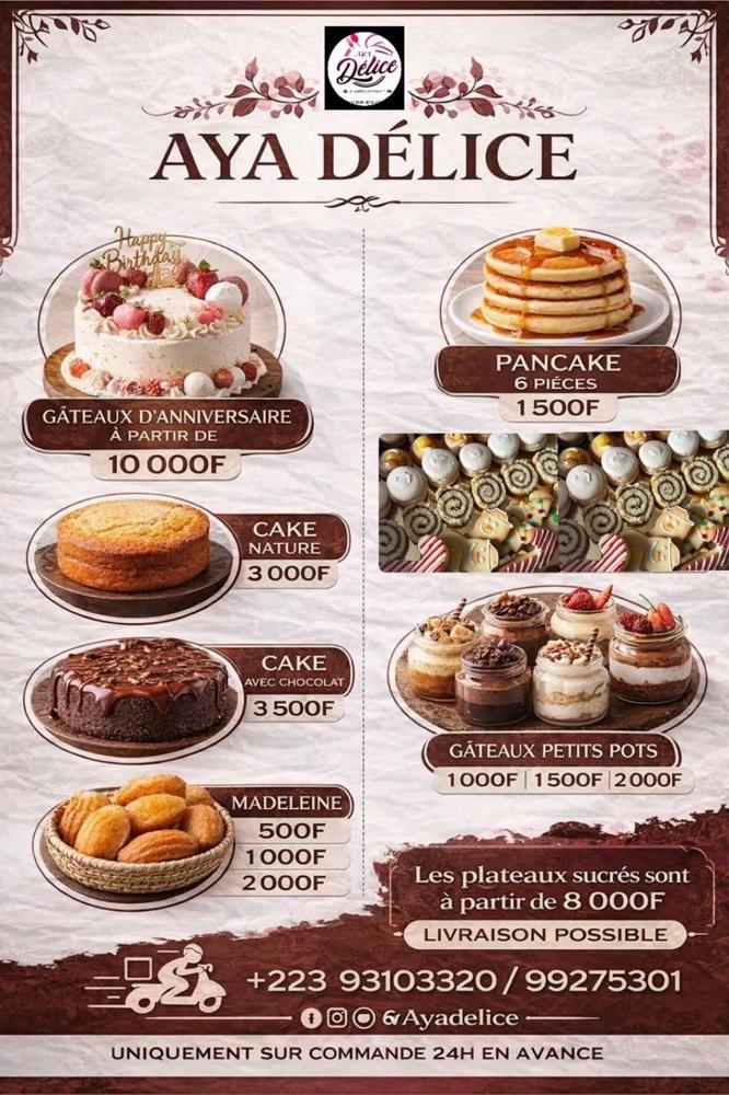 Aya délice à Sebenicoro wereda 99275301/93103320 Pâtisserie et vente du jus naturel